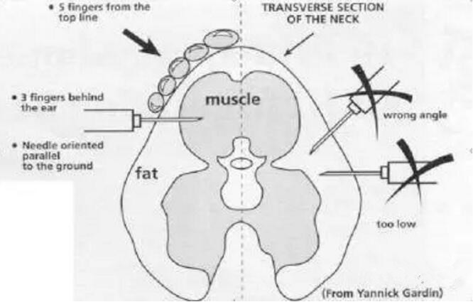 注射點(diǎn)太低,疫苗被注射入腮腺(降低免疫反應(yīng),腫大,進(jìn)食量少)。