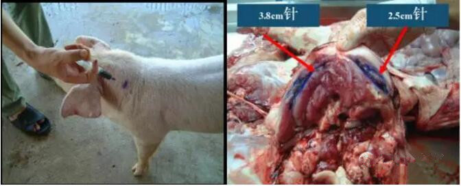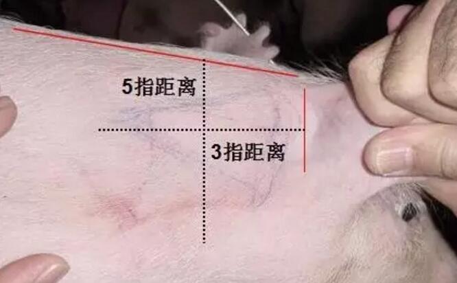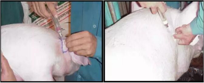 后海穴注射操作方法:提起尾部,用酒精等做常規(guī)的消毒,然后將針頭對(duì)準(zhǔn)凹陷中央,平行與直腸或稍向上進(jìn)入,進(jìn)針深度為保育豬1cm-1.5cm;育肥豬在2cm-4cm之間;公豬與母豬4cm左右。注意進(jìn)針過(guò)程不可向下刺,避免破壞直腸,造成免疫失敗。