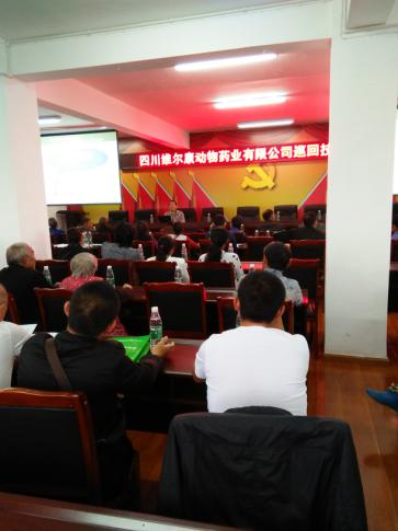 2016年9月20日,由片區(qū)經(jīng)理鄧仁全精心組織,應(yīng)江油市宏狀園獸藥有限公司總經(jīng)理趙紅的邀請,迎著瀝瀝秋雨,四川維爾康技術(shù)巡講團(tuán)走進(jìn)四川省江油市。此次會議由維爾康開發(fā)部經(jīng)理黃聲全主講,參會養(yǎng)殖戶80余人。