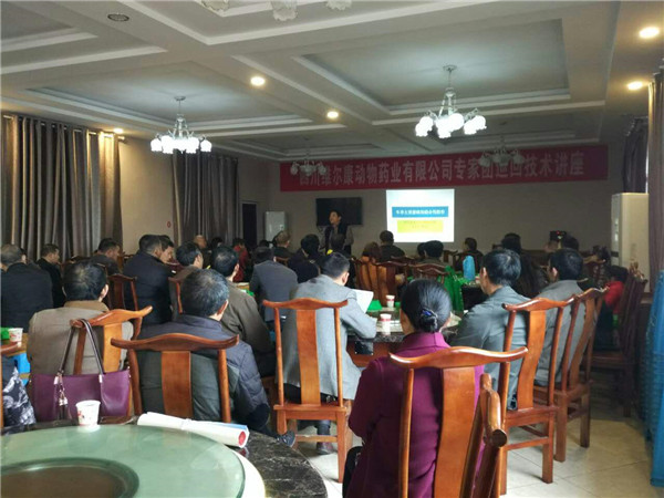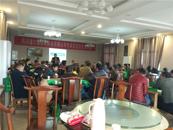 2016年11月20日,在岳池為民獸藥肖總的熱情邀請,片區經理鄧仁全精心組織下,維爾康技術巡講團走進四川省岳池縣,在南泥灣休閑山莊召開了一場技術會議。會議由維爾康專家團四川農業大學博導李英倫教授主講,參會養殖戶60余人。
