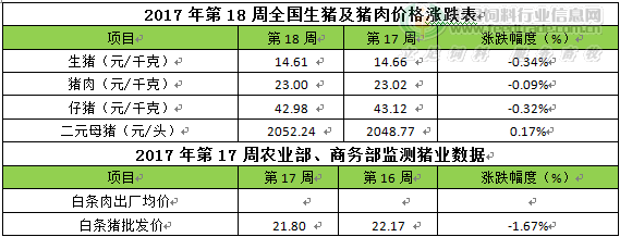 豬肉價格:農業部、商務部監測4月第4周白條肉及白條豬價格持續下跌。市場需求疲軟,加之當季蔬果大量上市,豬肉消費進一步下降,肉價持續下調。
