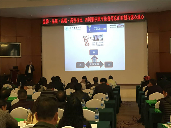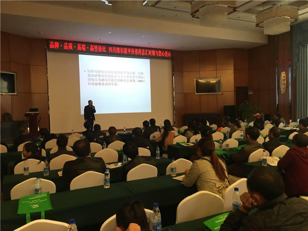 公司陳強副總經理就公司與四川農業大學聯合開發的母豬專用保健產品"強生肽",以及公司母豬系列保健產品作了專業的介紹。強生肽以益生菌、高端維生素、各種中藥處方而成,實現"清、補、調"的作用機理,強力提升母豬繁殖性能,解除母豬生產繁殖疲勞綜合癥。解決母豬便秘、淚斑、受孕率低、產程過長、初生仔豬整齊度,母豬使用年限短等一直困擾養殖生產中的問題。受到參會朋友的熱情關注!會議還特意安排現場向鄧教授提問,大家爭先恐后,積極提問,鄧教授一一進行了解答。會議在大家意猶未盡的氣氛中落下帷幕。