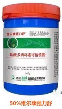 2.每1000kg飼料添加替多星1000g(或維可泰125g)+維爾先400g(或50維爾康強力舒200g)+雙黃連可溶性粉2000g飼喂。