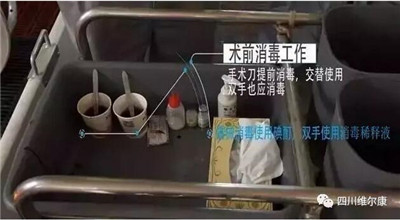 手術前對手術器具以及術者手臂使用消毒稀釋液進行消毒處理。