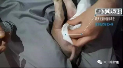 2、對陰囊部位皮膚進行噴霧消毒,然后用紙巾擦拭干凈。