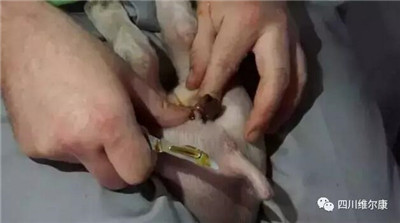 6、最后用裝有青霉素粉的精液瓶將粉末倒入創(chuàng)口位置。