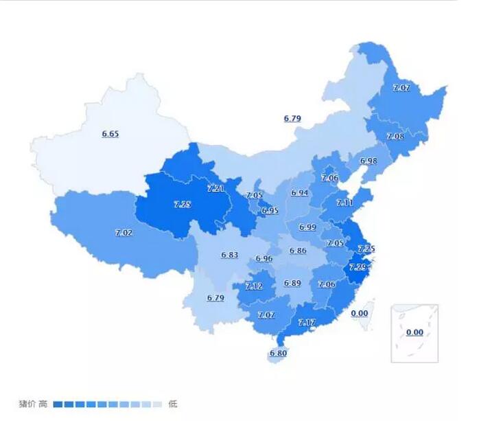 今日豬價較上周豬價上漲0.06元/公斤,漲幅維持在0.01-0.24元/公斤,跌幅維持在0.01-0.20元/公斤。全國上漲地區較多,下跌地區較少。山東省、江西省、福建省、湖北省、河南省、湖南省、天津市和四川省下跌,其余各省市均出現一定幅度的下跌或持平。內蒙古、甘肅省、海南省上漲前三,天津市、四川省、福建省下跌排前。