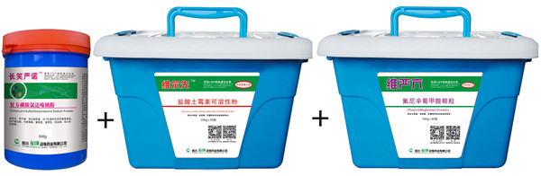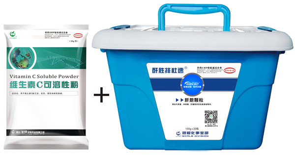 治療期間全程配合100kg飲水添加維生素C可溶性粉100g+酐勝排杜速100g+葡萄糖5kg混飲。
