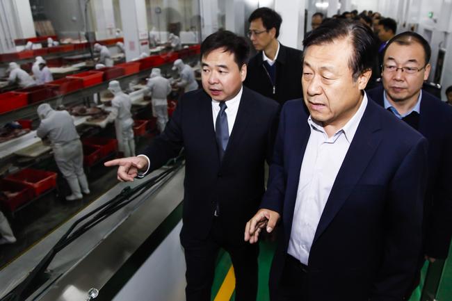 圖為農(nóng)業(yè)部副部長(zhǎng)于康震與全國(guó)農(nóng)業(yè)系統(tǒng)各級(jí)畜牧獸醫(yī)部門主管在陜西省渭南市蒲城縣大紅門肉類食品加工場(chǎng)現(xiàn)場(chǎng)觀摩。