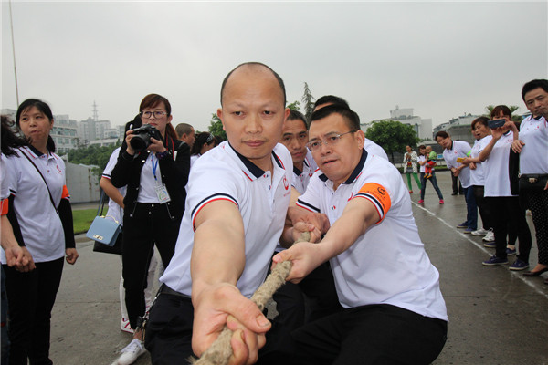 比賽中,本著友誼第一比賽第二的精神,各隊隊員參賽熱情高漲,都積極踴躍參加,盡顯個人風采,努力為自己的小集體爭取榮譽,賽出水平。拔河比賽開始了,這項比賽可以說是考驗一個團隊凝聚力,精神以及組織紀律性的最好時機。場上隊員卯足了勁兒,半蹲,擺好馬步,身體向后傾,重心向后壓,蓄勢待發…裁判口哨一響,隊員們隨著有節奏的加油助威聲,齊心協力往后拉,連平時優雅的女士們此時也變成了大力士。最后,紅隊一舉奪冠,黃隊和綠隊分別得了二名和三名。