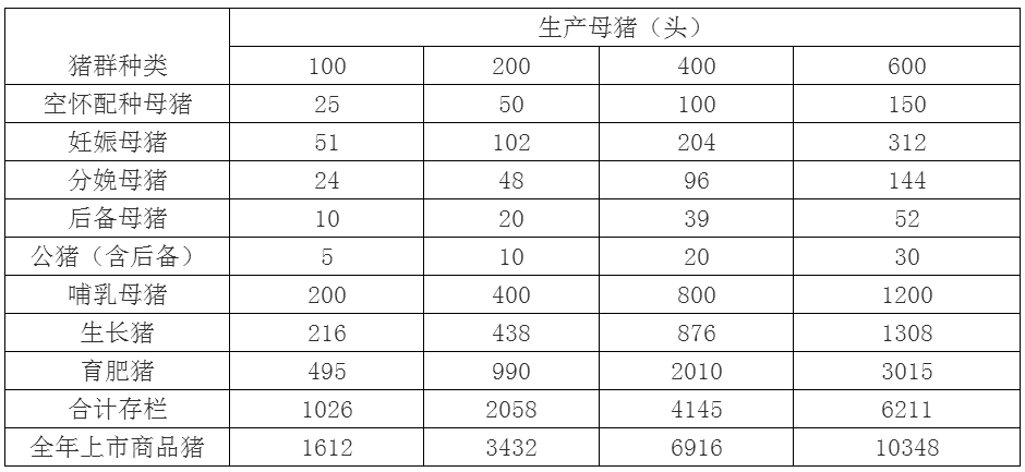 4、仔豬和生長肥育豬2200—2600頭(豬的頭數跟平均產仔數、斷奶制度及豬只存活率有關),合計起來該豬場全年飼養量大約為2330—2630頭。